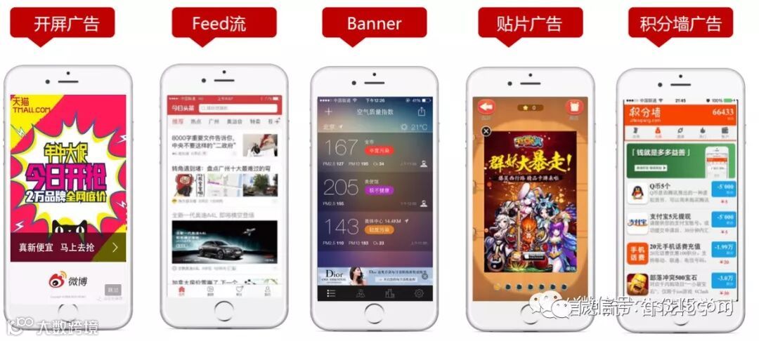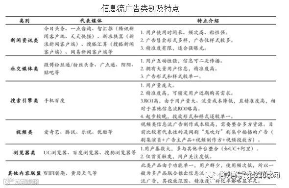 搜索广告;开屏广告;信息流广告;视频贴片广告;积分墙广告;