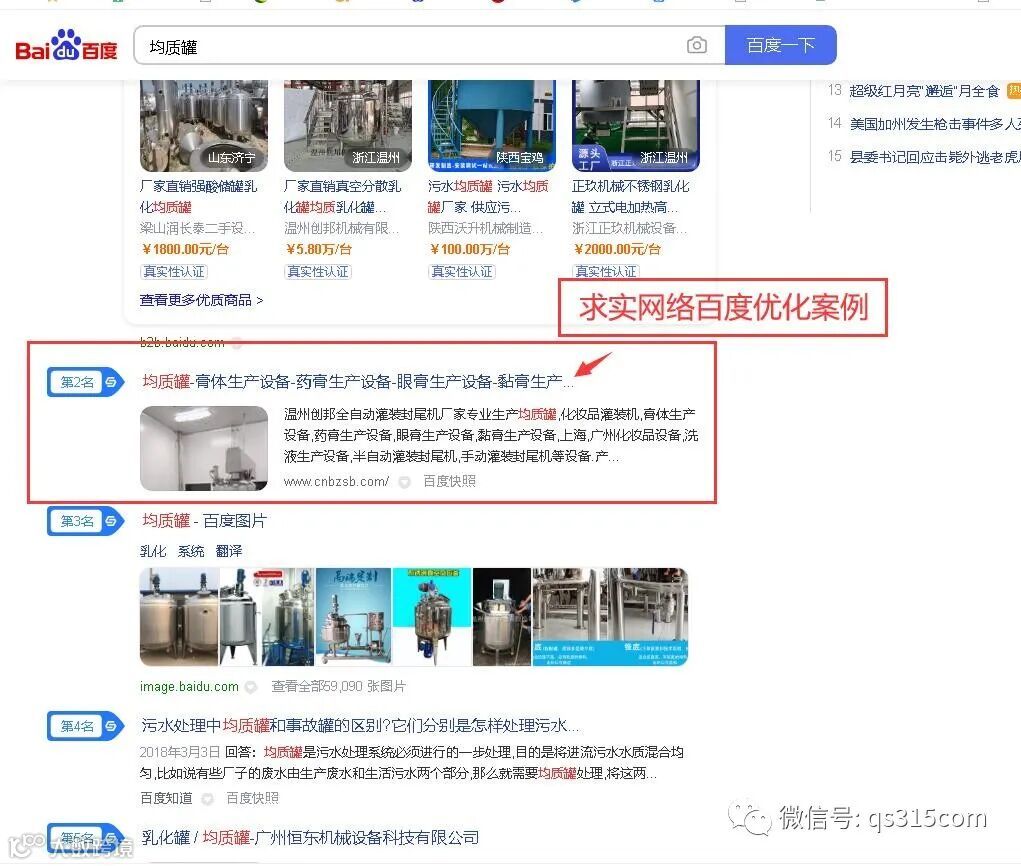 均质罐、口服液搅拌罐、灌装封尾机等关键词均在百度首页。