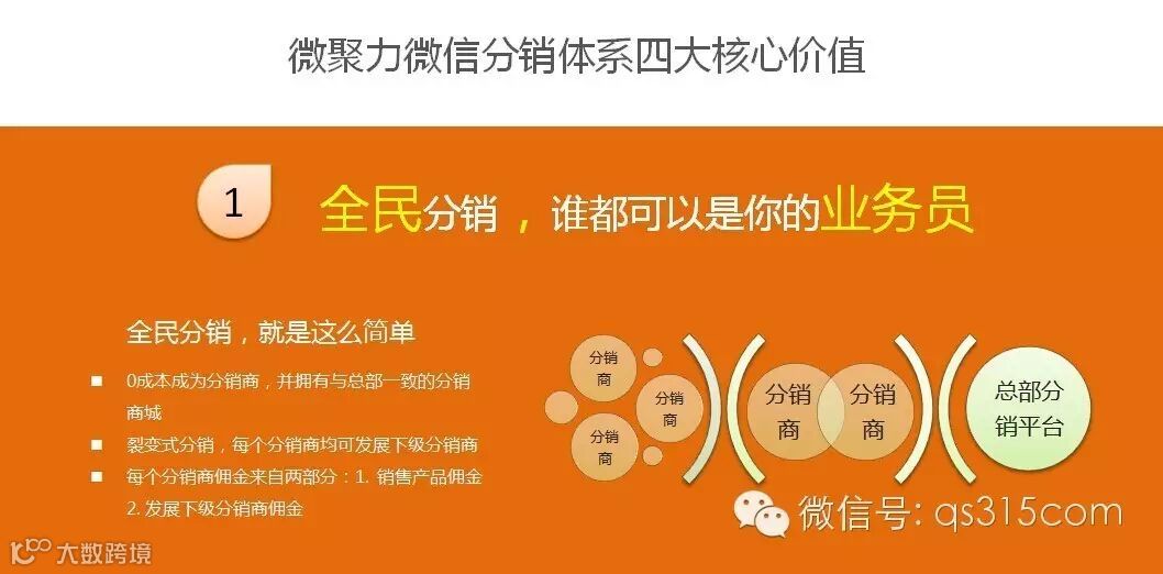 每个消费者都有可能成为分销商。商家省去苦苦寻找推广员的过程,客户就是最好的的商品导购员。所有门店的导购和所有的线上线下消费者,均可以转化为商品销售的业务员,以一带十,以十带百,以百带千,深度挖掘每一个人的潜在商机。微大众分销系统针对微信开店数量并无限制,短时间内可迅速开出千万家微信分店。