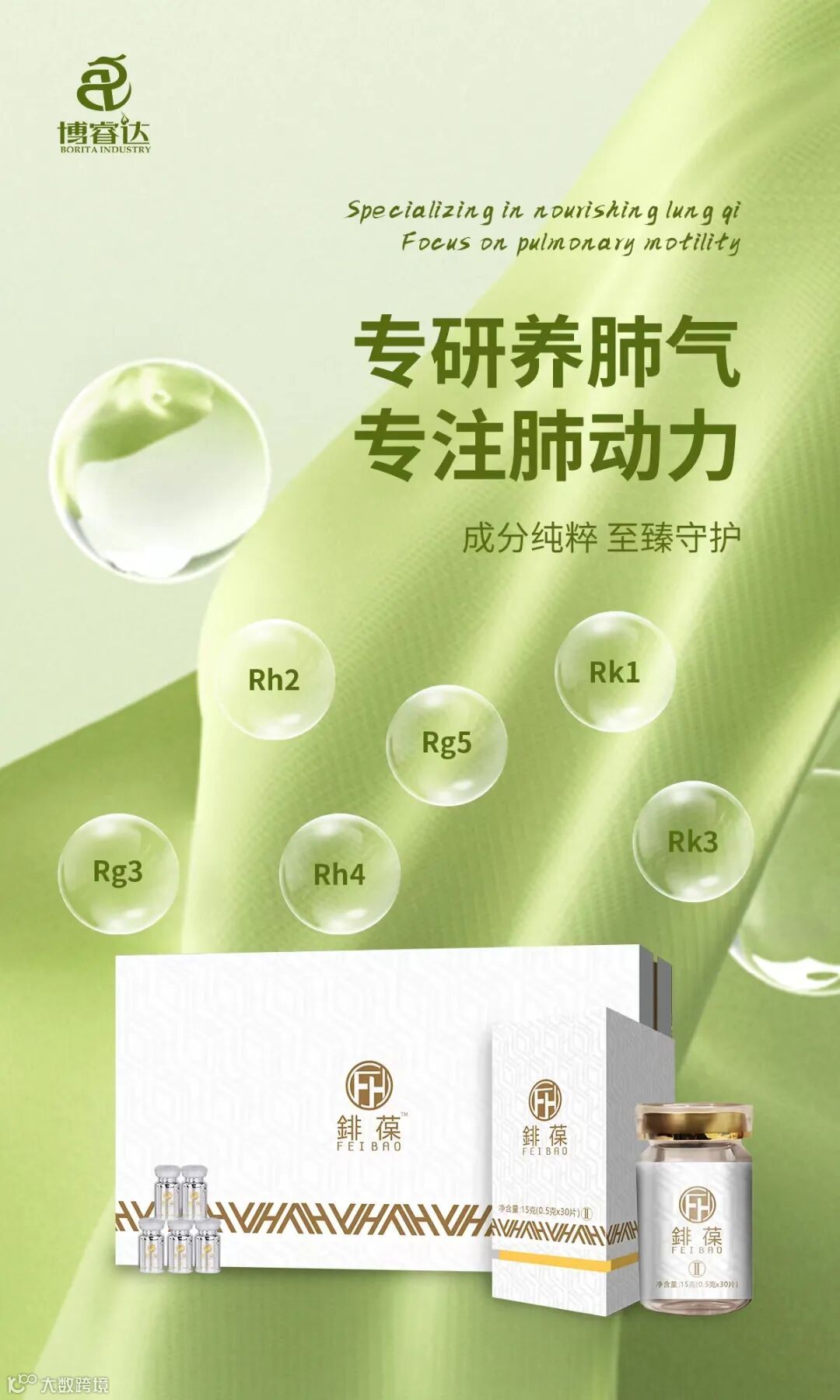 专研养肺气,专注肺动力!成分纯粹,至臻守护。国内顶尖科研团队数十载心血凝聚,选用天材地宝人参,针对长白山人参进行了历经十几年的潜心研究,利用国家食品药品监管局许可的试剂和方法,对长白山人参进行了科学加工,制备了人参深加工制品“肺葆”。