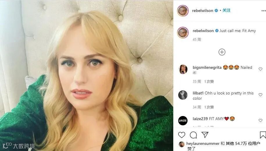 如今减肥成功的她。在Ins上调侃到“Just call me: fit Amy”。可以说从fat Amy到fit Amy,瑞贝尔完成了一次华丽的蜕变!