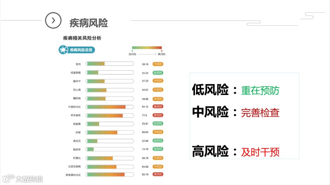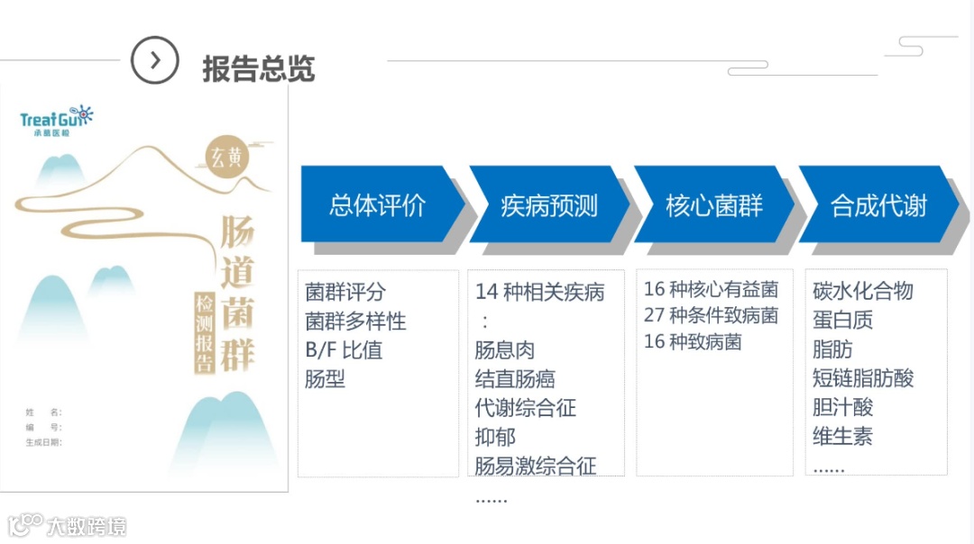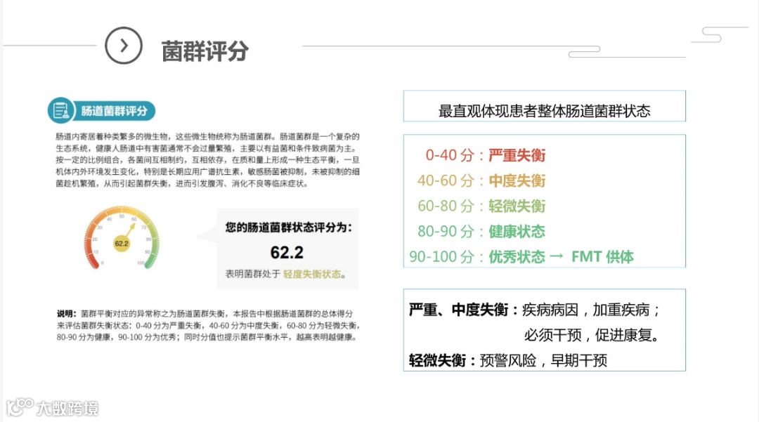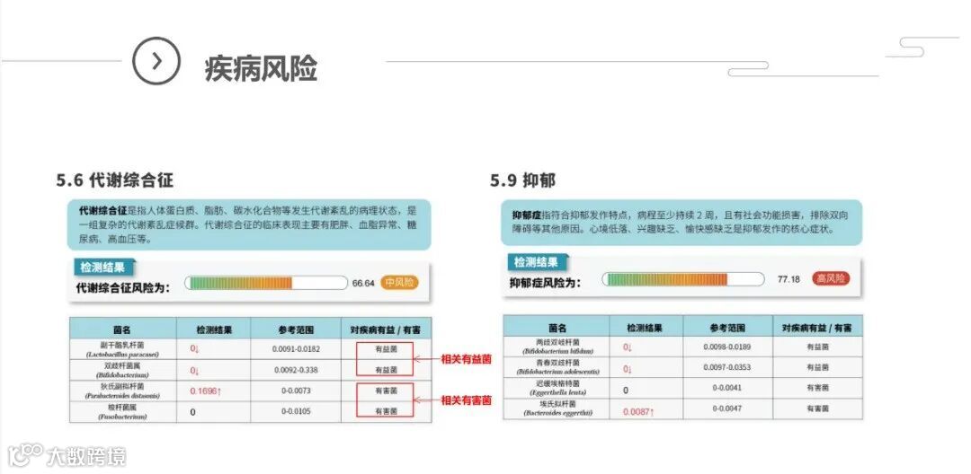 全面反映出个体菌群状况,并通过大数据比对,准确评估个人各类相关疾病的患病风险,为精准健康干预提供有效依据!