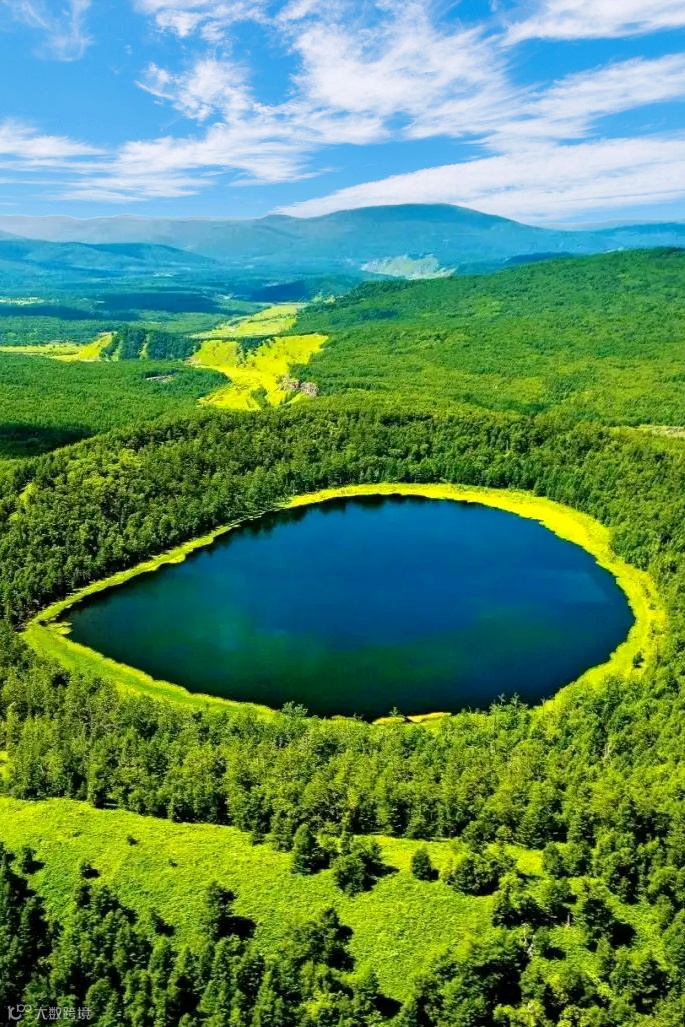 阿尔山天池海拔1323.3米。是全国第三高天池,湖水久旱不涸,久雨不溢,水平如镜,宛若一颗坠入人间的蓝宝石,镶嵌在高山之巅。