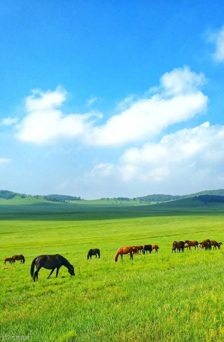 躺在绿油油的斜坡的草地上,对着蔚蓝的天空与大朵的白云,打几个滚然后再美美的睡上一觉,与远处成群的牛、羊、马群为伴,远离浮华。