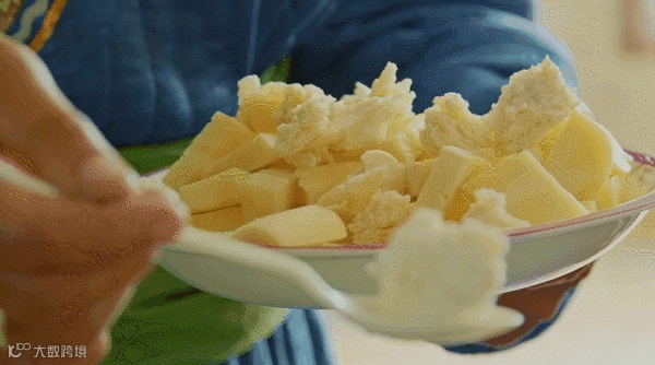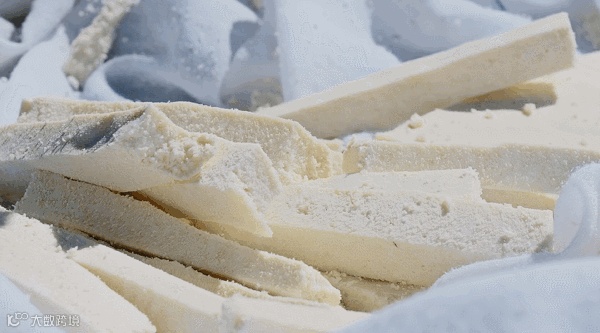 而奶渣则可以做成奶豆腐,将奶渣用重物挤压成型,再风干静止,就有了色泽乳白的奶豆腐,十几斤鲜奶才会有一斤奶豆腐,可以说是牛奶的精华了。