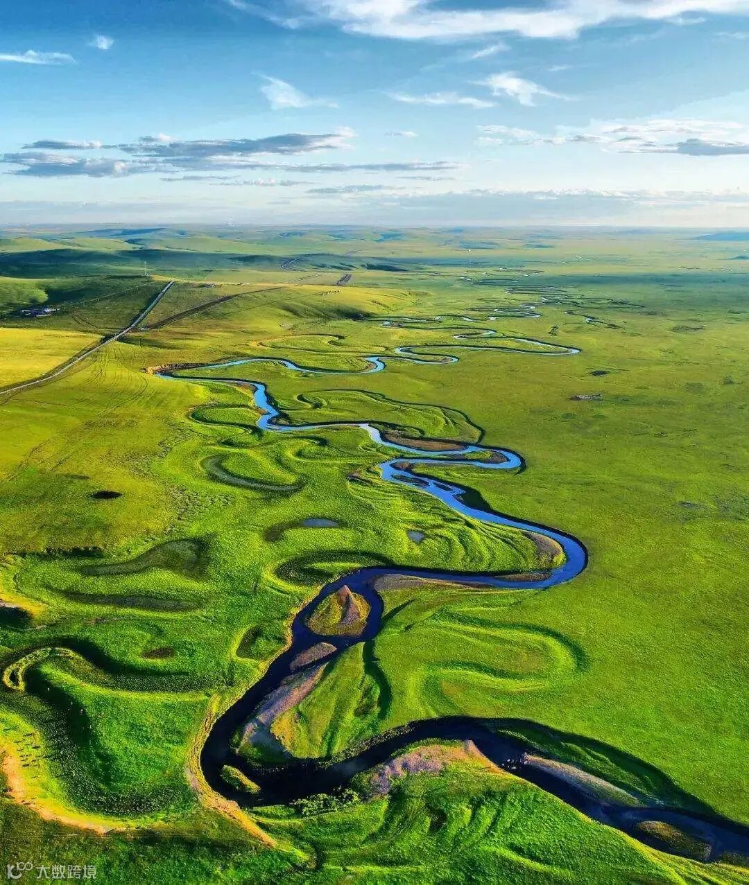 莫尔格勒河因其河道迂回弯曲极度曲折,就似巨龙盘卧在草原一样,弯弯曲曲九转回肠,水路辗转翻折,流向变来变去。