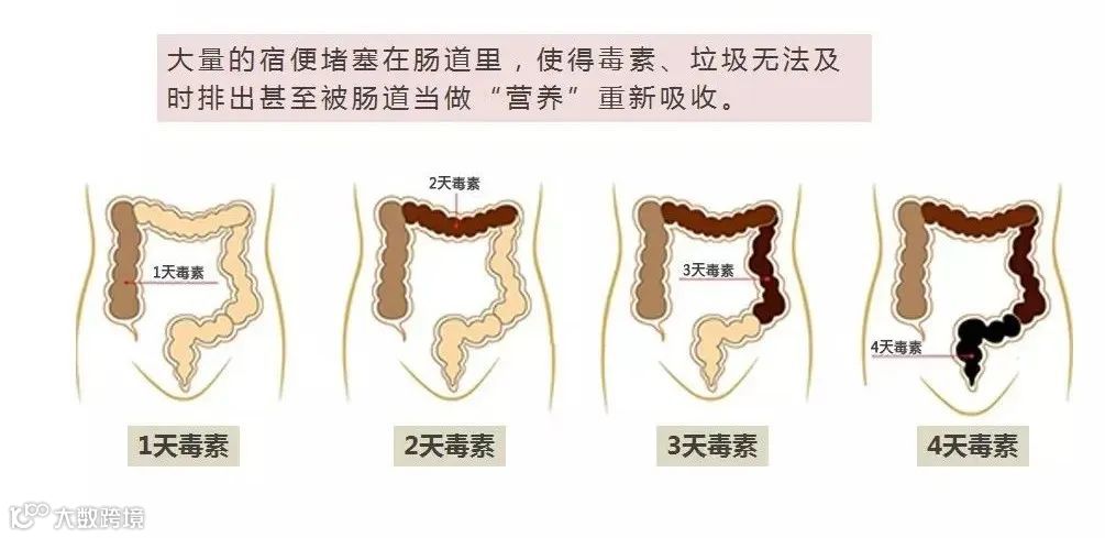 这些宿便、垃圾,像“铁锈”一样粘在肠道内壁,被肠道当做正常营养重新吸收到血液。并输送到身体各个细胞,造成肠胃功能紊乱、内分泌失调、致便秘、口臭、长痘、肥胖........