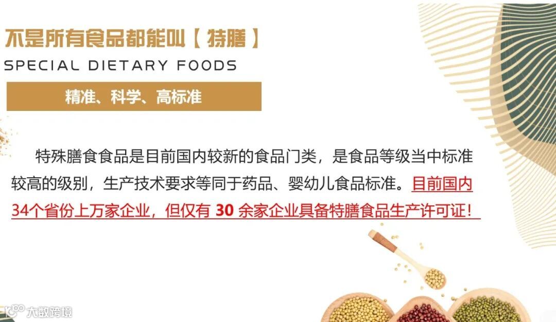 根据 GB 13432—2013《食品安全国家标准预包装特殊膳食用食品标签》,特殊膳食用食品的定义为:为满足特殊的身体或生理状况和(或)满足疾病、紊乱等状态下的特殊膳食需求,专门加工或配方的食品。这类食品的营养素和(或)其他营养成分的含量与可类比的普通食品有显著不同。