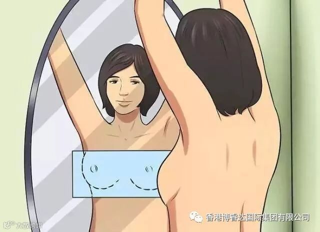 平时还可以自检一下乳房,对着镜子两手下垂于身体两旁,再将两上肢缓慢上举过头,观察乳房的任何改变,包括乳房的轮廓、有无肿起部分、有无皮肤微凹或乳头的回缩,接着,双手叉腰,观察双侧乳房是否对称。