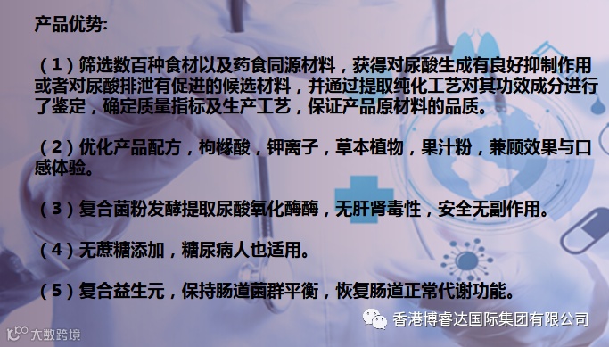 两款产品均经发酵工艺技术优化,能产生高活性的尿酸氧化酶,能够有效增加尿酸的肠道排泄,降低血尿酸水平。