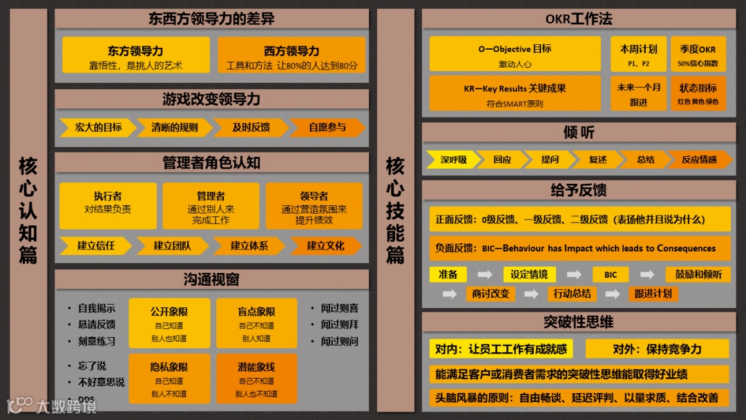 黄景老师将《可复制的领导力》分为核心认知篇和核心技能篇。