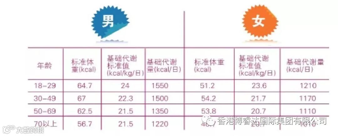 换句话说就是一个人在不吃、不喝、不动的情况下,生存所需要的卡路里量。基础代谢率随着性别、年龄等不同而有生理变动。男子的基础代谢率平均比女子高,幼年比成年高;年龄越大,代谢率越低。