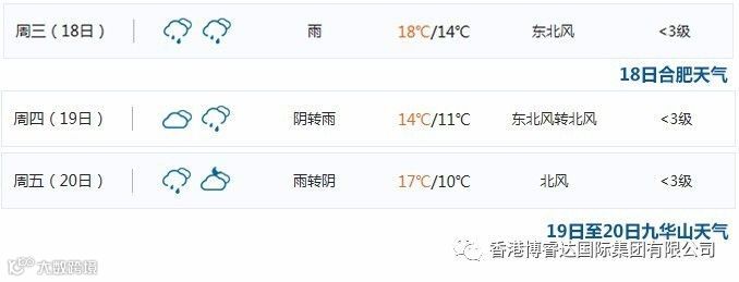 温馨提示1:本次身心灵净化之旅18日的报道地点为安徽合肥,之后的19日至20日将前往莲花佛国——九华山旅游祈福。根据中国气象局的天气预报显示,在此时间段里,两地温度都较低,并伴有纷纷的小雨。为了您的舒适,小编建议您在出行的时候准备外套和雨伞,以增加身体的舒适度。