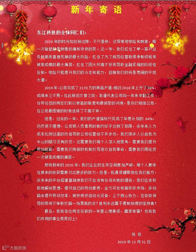 贵安新区东江科技 2020年新年寄语