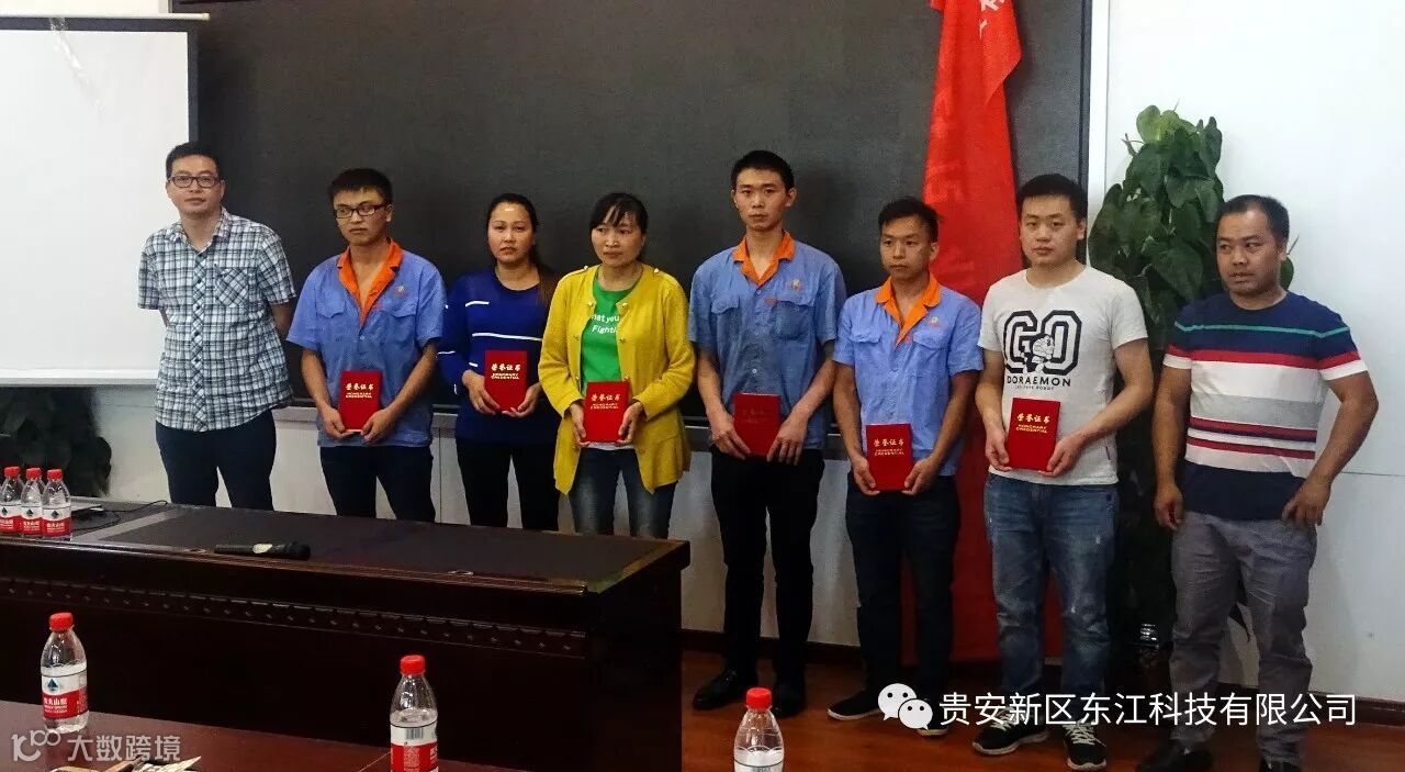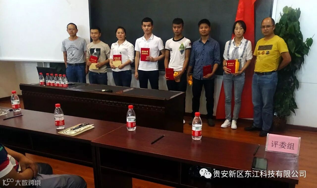 为表彰公司上半年度表现优异的员工颁发了荣誉证书,获得“生产质量标兵”的称号,荣获该表彰的人员有:晏祥、李建波、宋永连、罗时磊、吴金贵、张君娣。公司表示:所有获得该荣誉的员工,都是东江的标杆,正如所有行业都需要领头人一样,这些人都将会成为东江的中坚力量,并且勇往直前。