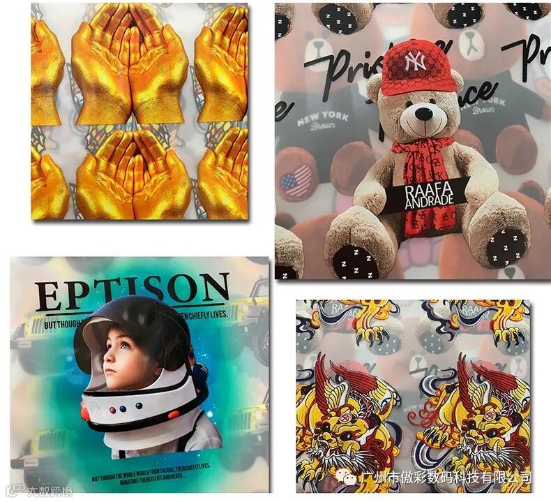 它的应用非常广泛,印花厂、服装厂、个性化定制、网单销售等都能用到,产品可应用在衣服,裤子、帽子、包包等,单印白墨烫画,工艺简单省人工、产量高、速度快、成本低,很容易抢占中低端产品市场;还可搭配烫钻、镭射片、绣花、烧花、高周波等工艺生产高端产品,适应性非常强。