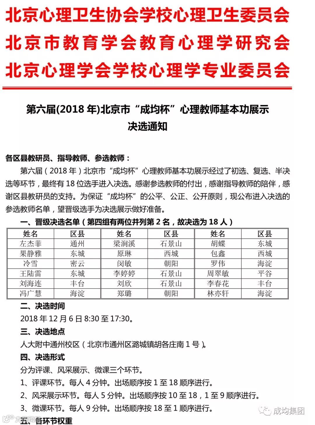 关于《第六届(2018年)北京市“成均杯”心理教师基本功展示决赛》的通知