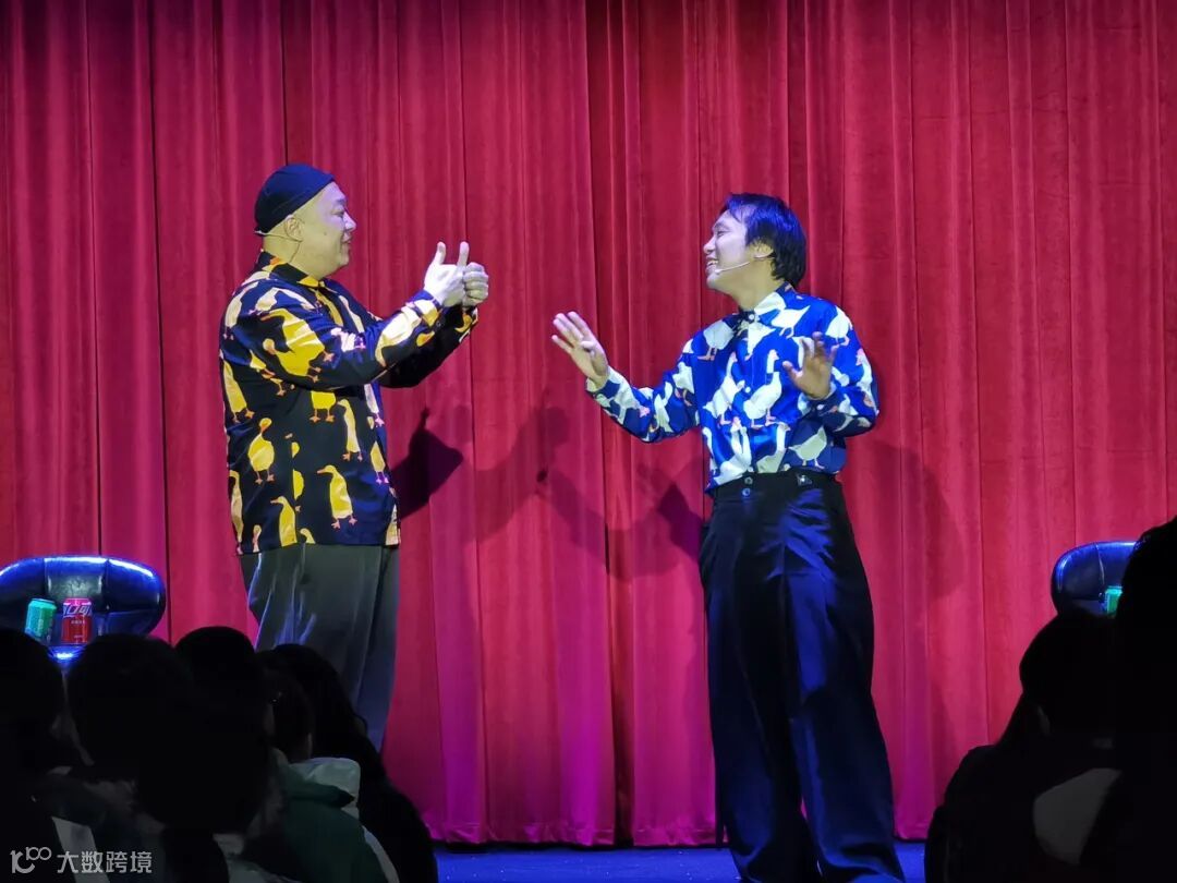 烧鹅与大春携手带来90分钟的爆笑盛宴,脱口秀、漫才、即兴喜剧多元融合,将都市潮流喜剧的魅力展现得淋漓尽致,让现场观众沉浸在欢乐之中,笑声始终回荡在剧场。