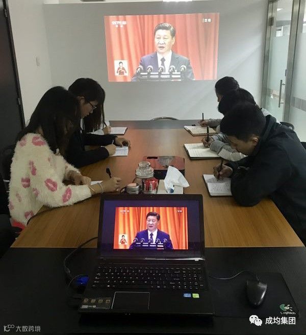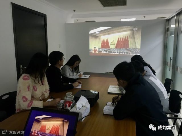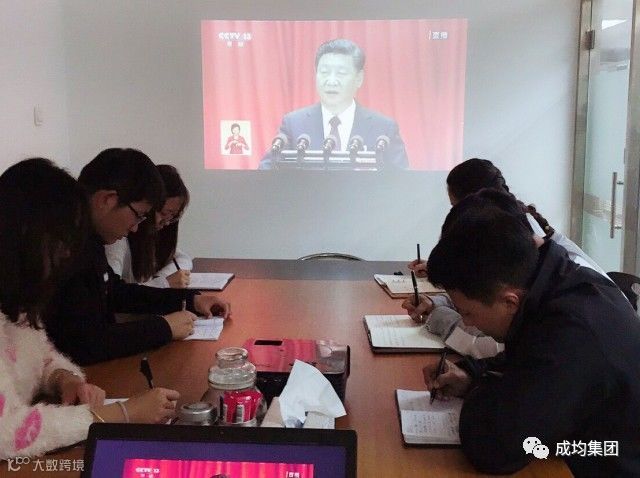 10月18日,北京成均科技有限公司员工聚集在一起,通过网络视频直播,集体观看党的十九大开幕盛况、聆听并学习习总书记的大会报告。