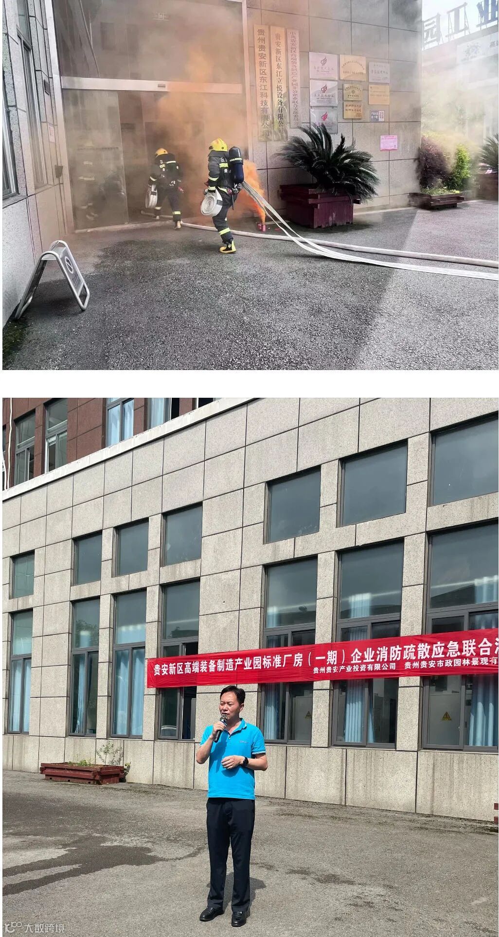 演练模拟:2024年4月19日下午15:00分,23栋厂房贵州贵安新区东江科技有限公司二楼突然电路老化引发火灾,园区应急小分队与贵安新区消防救援支队高端装备制造产业园小型消防工作站接到“报警”立即出动前往组织疏散和火灾初期扑救。现场,指挥组织高效有序,所有人员分工明确、紧密配合,在大家的协同配合下,火势迅速得到控制,演练取得圆满成功。