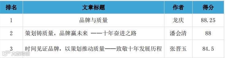 质量征文活动共有19篇文章参与评比,现将前3名进行公示