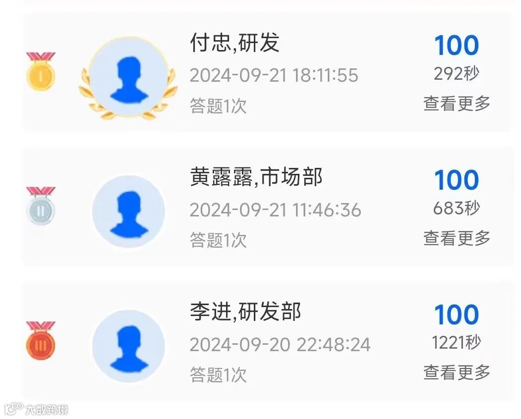 质量知识竞赛线上答题活动共有46名同志参与答题,现将前3名进行公示