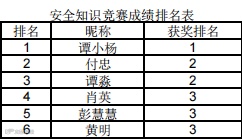 恭喜排名前三的安全小卫士们