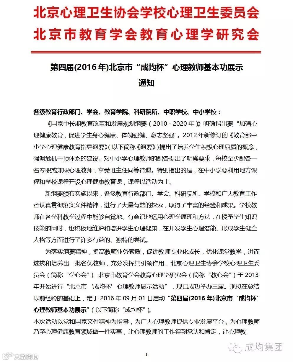 第四届(2016年)北京市“成均杯”心理教师基本功展示 通知