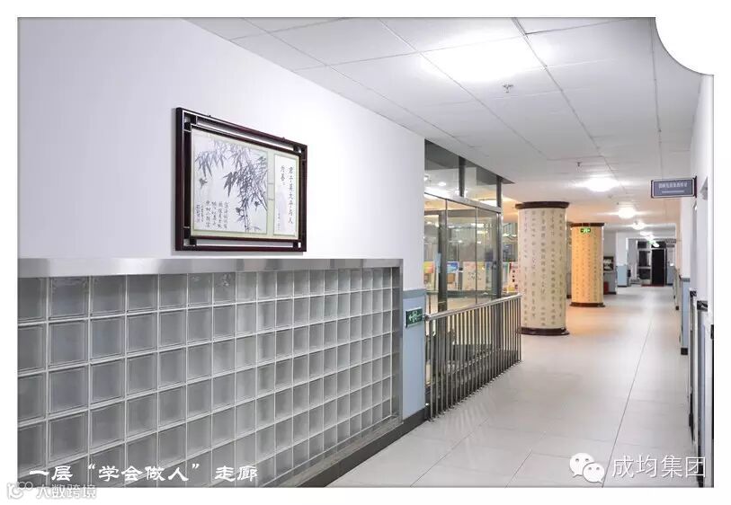 三层学会学习廊 ,借以“纸墨笔砚”彰文采,其所选图画及名人名言寓意“学会学习”与“自制、审慎坚持、审美、乐观/希望” 的积极心理品质吻合。长廊共有装饰挂画22幅。