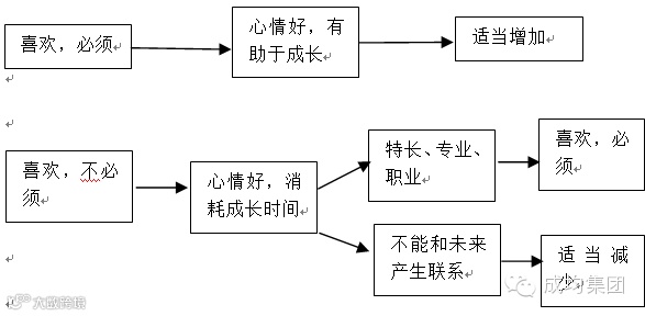 1、 引导学生把所做事情分为“喜欢且必须”、“喜欢且不必须”、“不喜欢但必须”、“不喜欢也不必须”四类。