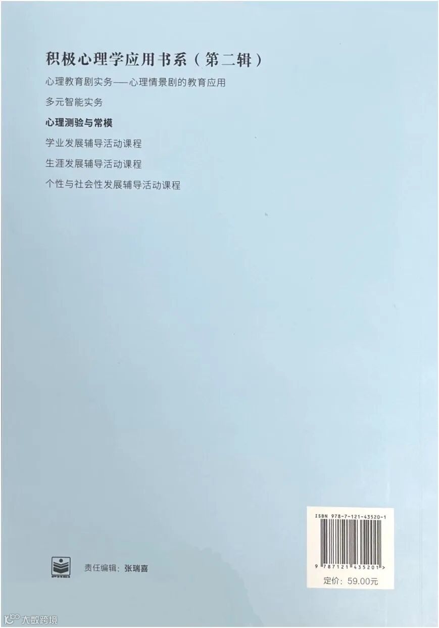 本套丛书第二辑的六本书力图体现积极心理学的思想,《心理教育剧实务》沿用第一辑的结构,从PERMA的五个方面来搭建;《多元智能实务》向我们展示了每个人都有优势的一面,是真正的“帮助人类发挥潜能的科学”;《心理测验与常模》向我们介绍了常用的心理测验以及最新的常模,我们在通过心理测验进行自我探索或者了解他人的时候,可以更加深入地体察自己和他人的长处,增强自信,发挥潜能;《学业发展辅导活动课程》《生涯发展辅导活动课程》《个性与社会性发展辅导活动课程》由美国《学校咨询师手册:辅导课程活动》小学版、初中版、高中版编译而成,原书符合“美国学校咨询师协会”(American School Counselor Association,ASCA)所制定的国家标准,编译后的三本书在吸取原作精华的基础上,力图从发展性辅导理念出发,不刻意地矫正问题行为,而是重点关注大多数中小学生的健康成长和发展。