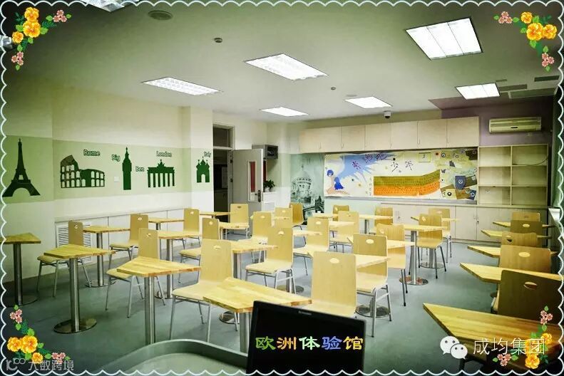 体验馆以欧洲代表性国家标志性人文景观为场馆装饰主线,以尊重传统、治学严谨、具备探究精神的特质为文化主线;通过教学,培养学生独立研究学习思维习惯和行为习惯。该场馆配备国际多元素质能力课堂“独立研究”课程。