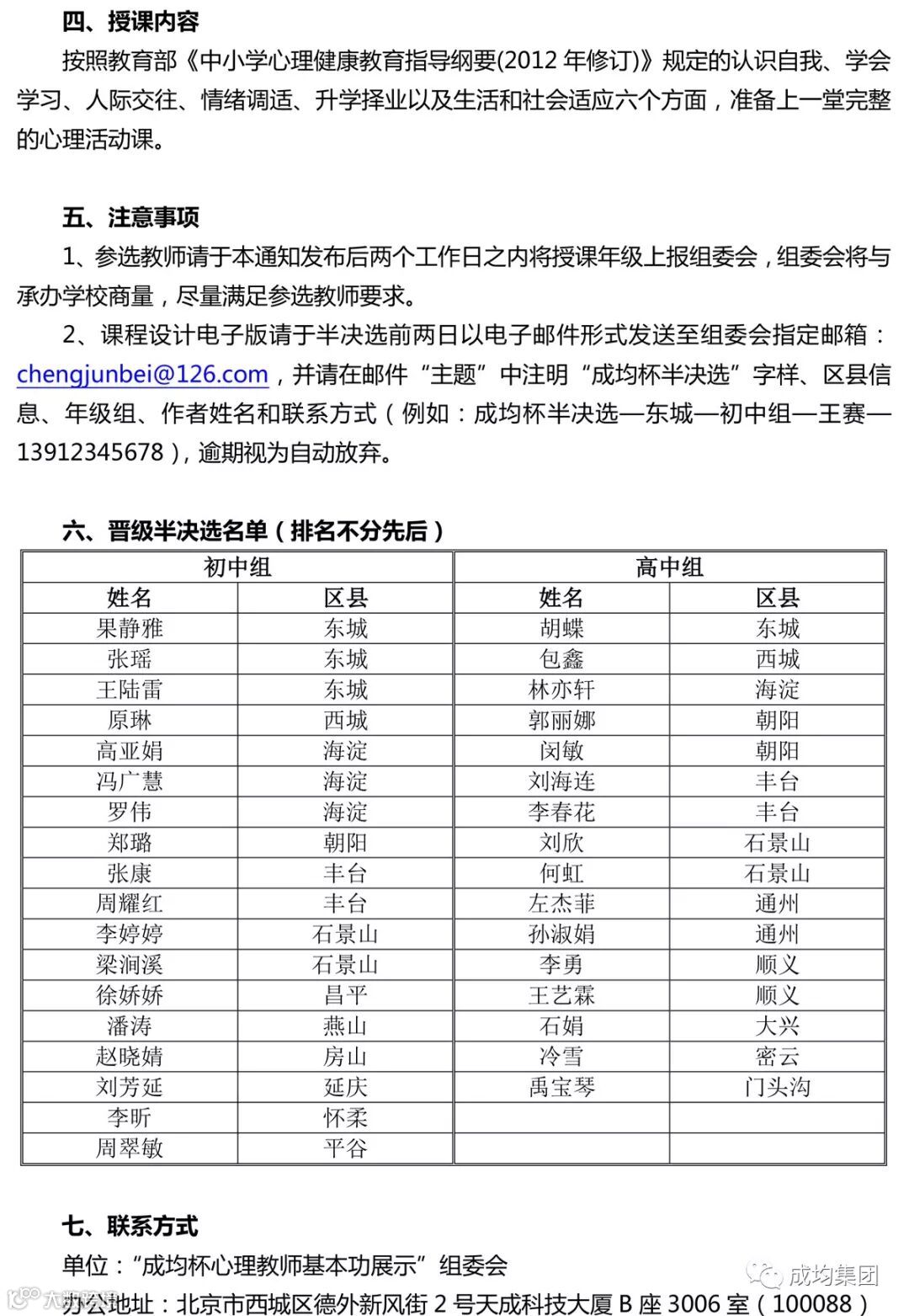 关于第六届(2018年)北京市“成均杯”心理教师基本功展示半决赛的通知