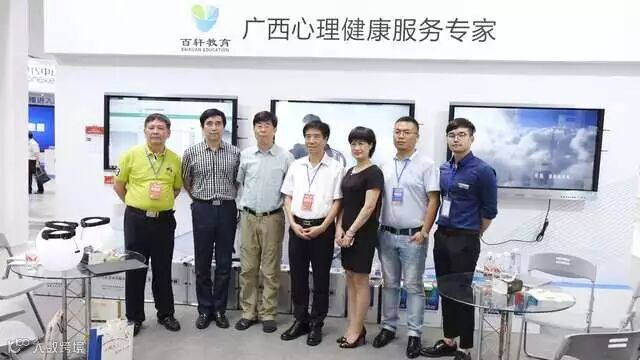 广西教育装备协会名誉会长陈铁华,中国教育装备行业协会副会长、山东省教育技术装备主任冯俊华,教育部教育装备研究发展中心原副主任李玉先,中国教育装备行业协会会长、教育部关心下一代工作委员会常务副主任王富,到合作伙伴广西百轩展位观摩指导并合影留念。