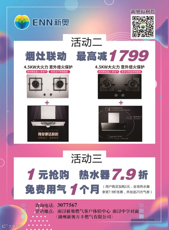 活动二: 烟灶联动,最高可减免1799元,更有好礼相送,活动时间2020年9月3日-9月5日;