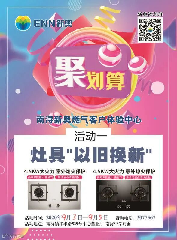 活动三:燃气灶以旧换新,最高抵扣499元,每天限购10台,活动时间2020年9月3日-9月5日;