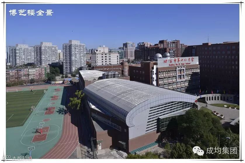 十九中的五座楼宇犹如五颗璀璨的星星,日夜闪耀在美丽的校园。“培元楼”秉承培民族之元气的培元精神,以传统文化之笔触,弘扬了学会做人、学会健体、学会审美、学会生活的精髓。“育英楼”倡导育国家之英才的情怀,以环球文化的盛景,展现了积极心理学的思想。”行知楼“且行且知,知行合一,既动手又动脑,勤于实践,学会创新。”学知楼“成于内播于外,求索办学理念,传播幸福教育。”博艺楼“食养身艺养心,即为师生提供美食,补充体力;也给师生以美的享受,涤荡心灵!为将校园文化建设与十九中的百年历史和内在精神相契合,“成均集团”在设计上力求精益求精,也敢于尝试、大胆创新。