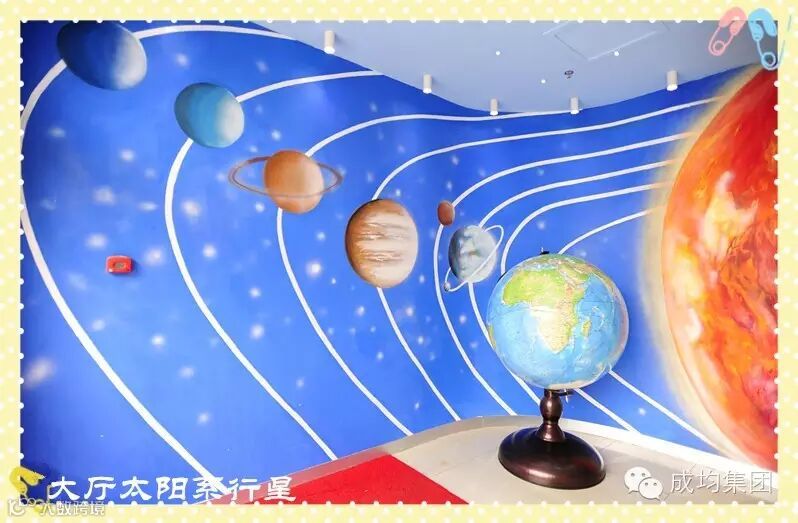 一层门厅,太阳系图案表现出十九中放眼宇宙的视野和胸襟,地球仪又提供给学生“玩转地球”的乐趣和魄力,同时寓意要放眼世界,胸怀天下,这正与学校“具有国际眼光”的育人目标相契合。