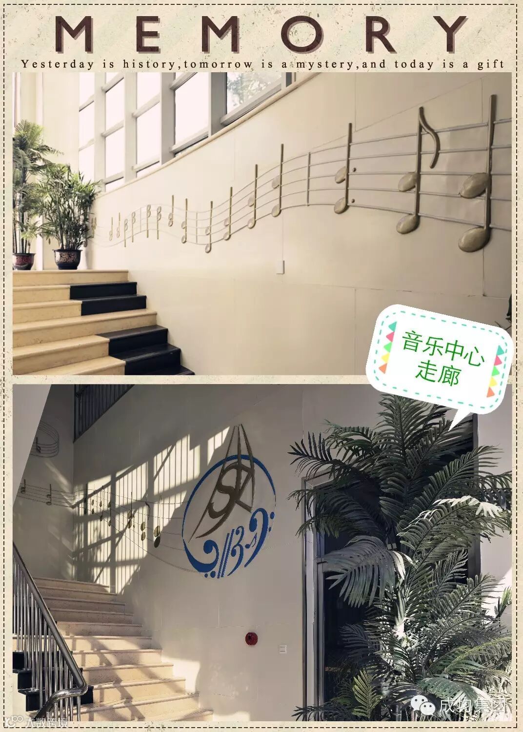 走廊中由19组成的列宁、海涅、雨果等名家的音乐教育名言,使这里愈发充满韵味和励志氛围,从而对学生的心理产生冲击,激发学生学习音乐的兴趣。