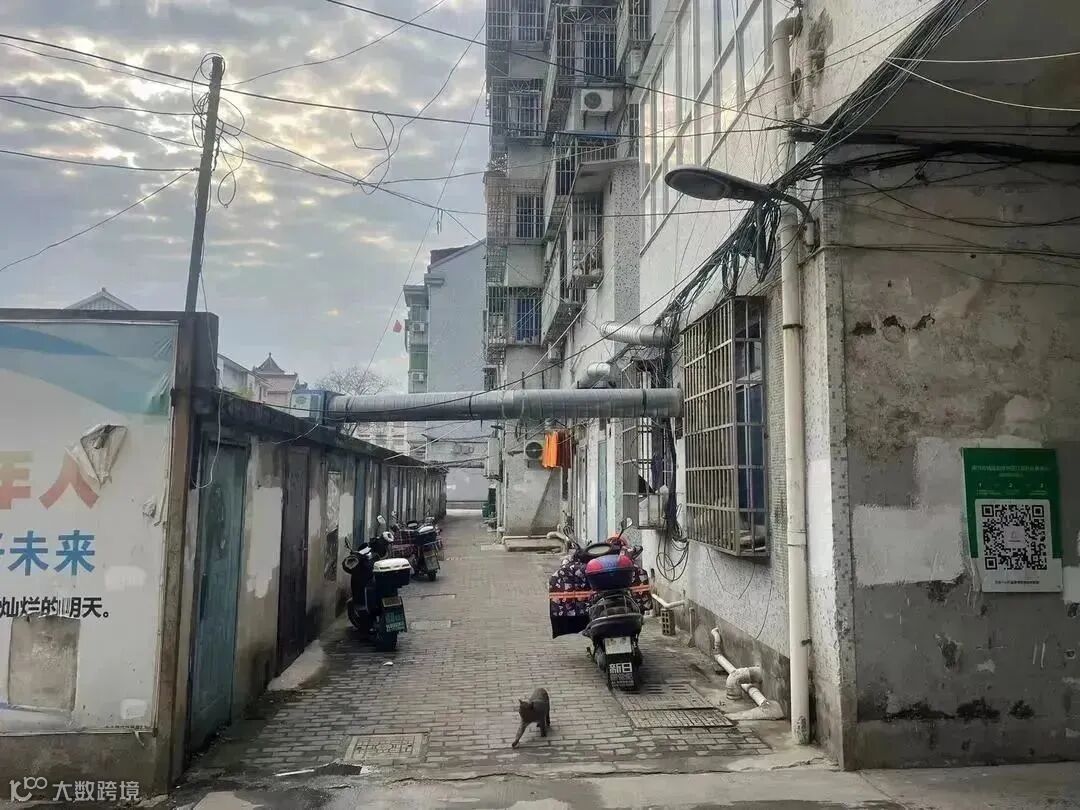2、该小区西侧烟道、电线、彩钢瓦防雨棚混乱,无法搭建钢管制脚手架且存在安全隐患。