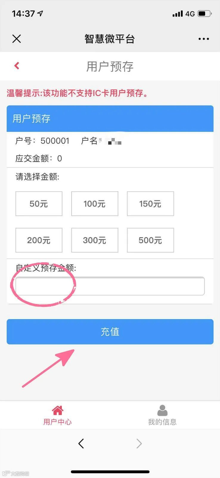 输入需要充值的金额,点击“立即缴费”,进行支付