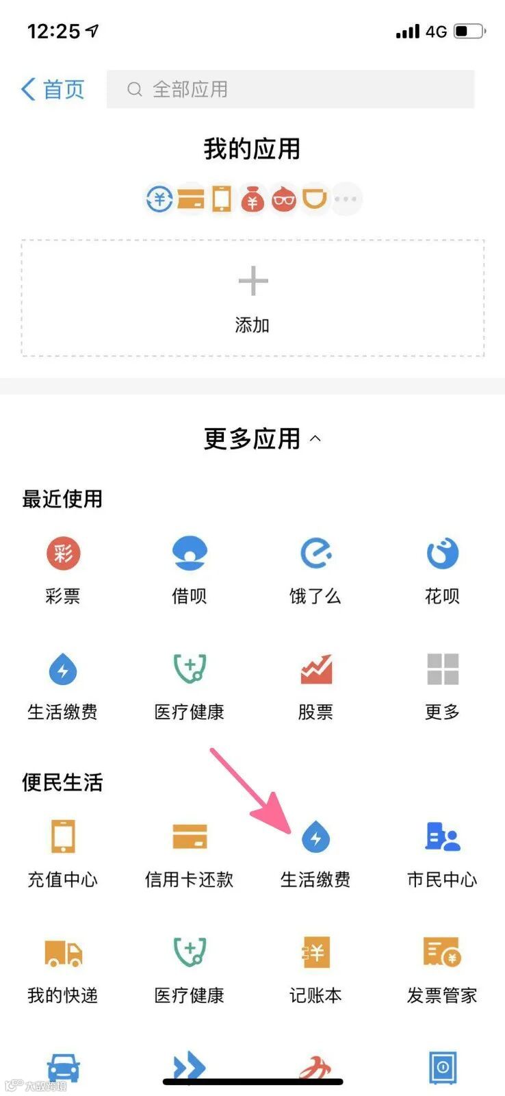 打开支付宝,找到“生活缴费”