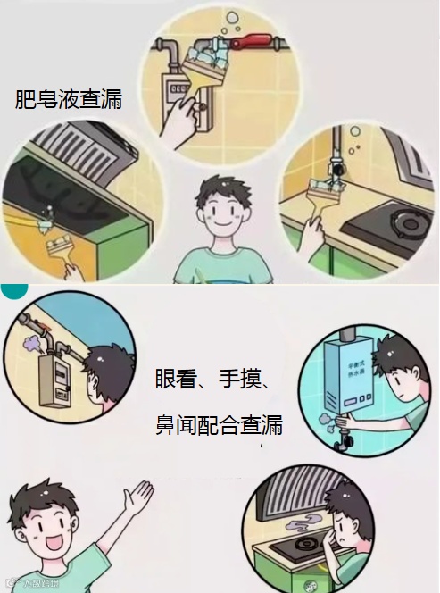可以定期用肥皂水等涂抹在管道连接处,若产生细密小气泡,则说明此处漏气。