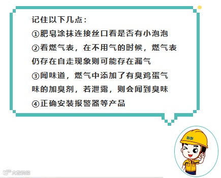 还可以通过正确地安装报警器和购买燃气保险来提高漏气风险的防范和减少损失!