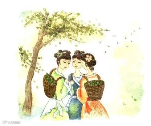 《十亩之间》,描绘了女子采桑之余结伴归家的愉悦景象。“十亩之内桑树间,采桑姑娘多悠闲;走吧,咱们一起回家转。十亩之外桑树林,采桑姑娘笑盈盈;走吧,咱们一起转回村。”