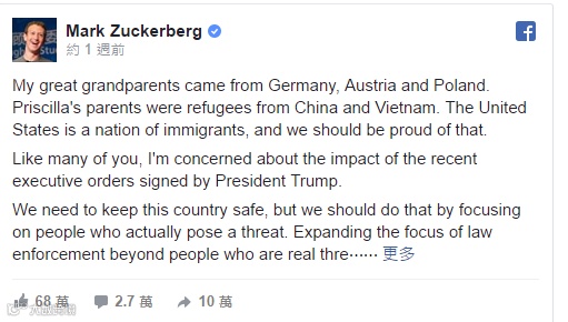Mark更是又激动讲演讲,又在脸书上声情并茂,细细分享他曾祖父和曾祖母移民的真实故事。