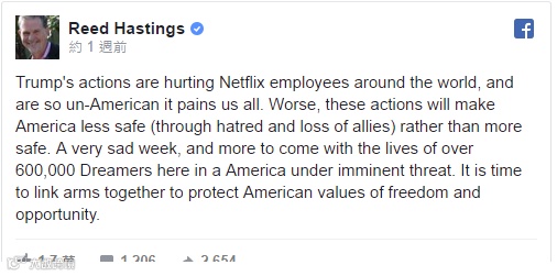 Netflix的CEO更惊叹川普的行为简直不是美国人会做出来的行为。