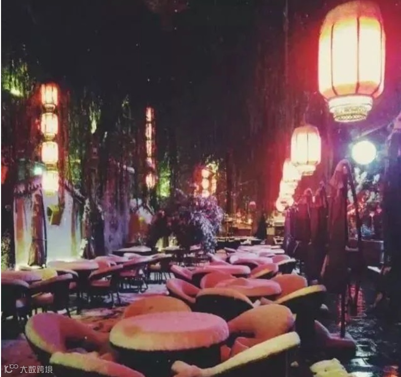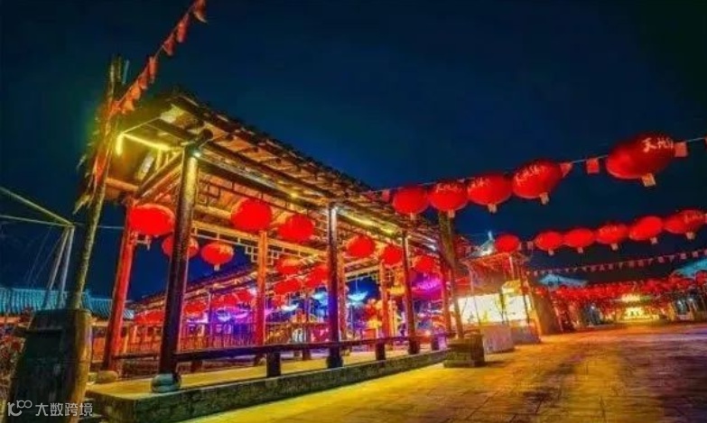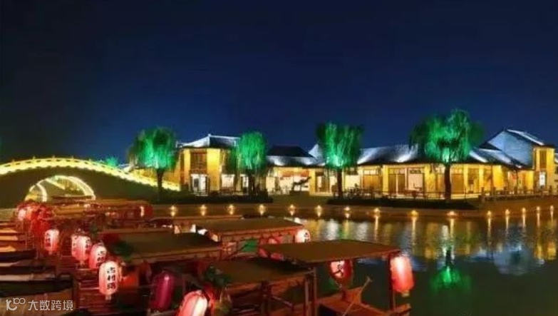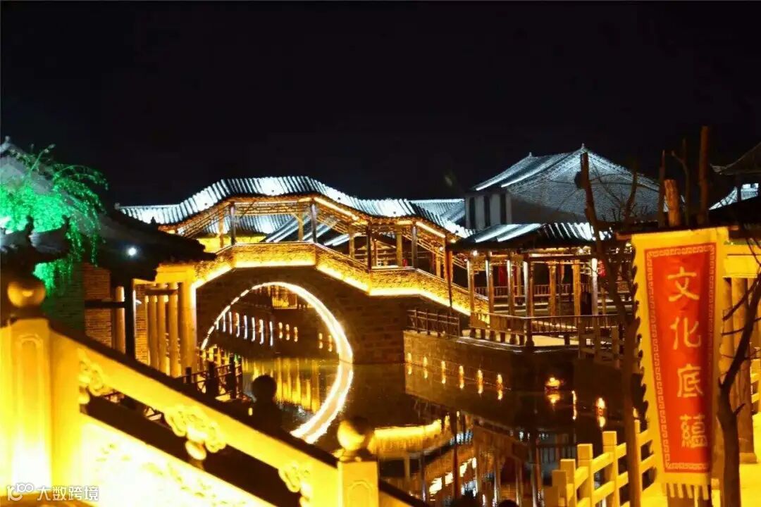 晚上,这里灯光闪烁,七彩流光,原本沉寂的古建筑在夜的装扮下,焕发生机,似乎穿越到那古香古色的时代。