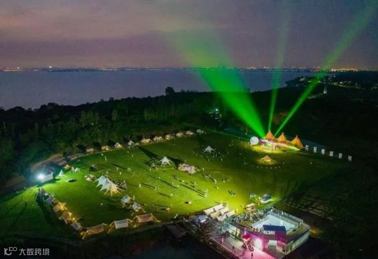 ③ 清澈的芙蓉河上,好似朵朵“金花”的岸灯,争先开放