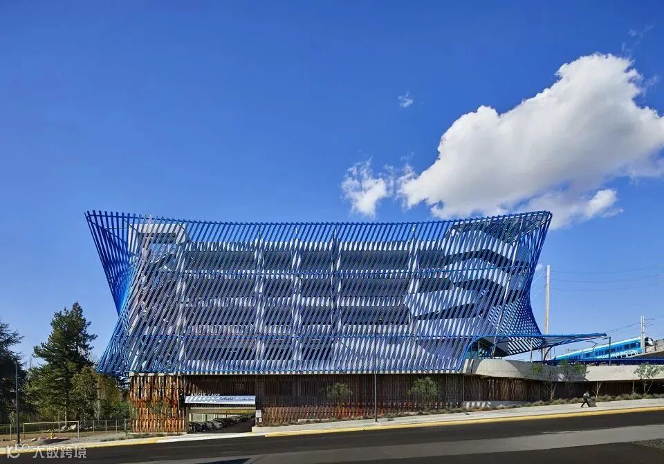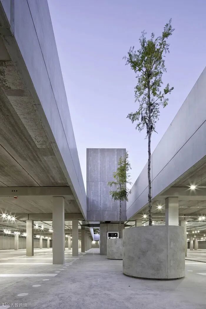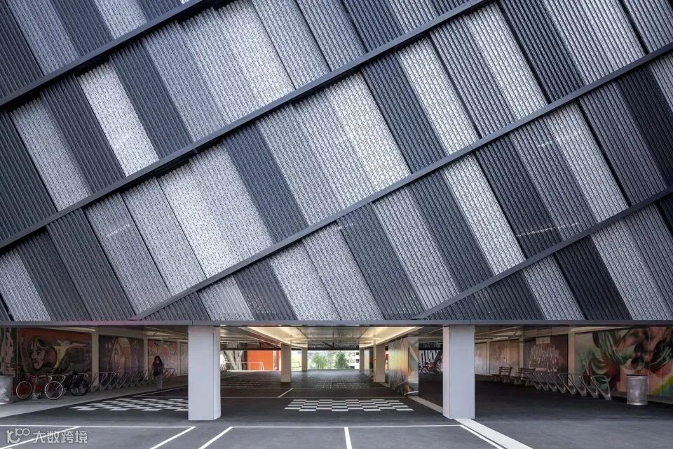 建筑师采用斜面钢网构成大楼的立面,将停车楼打造为街区的入口的标志。表皮的浮雕图案捕获了光线,塑造出动态的视觉效果,使建筑显得十分轻盈。